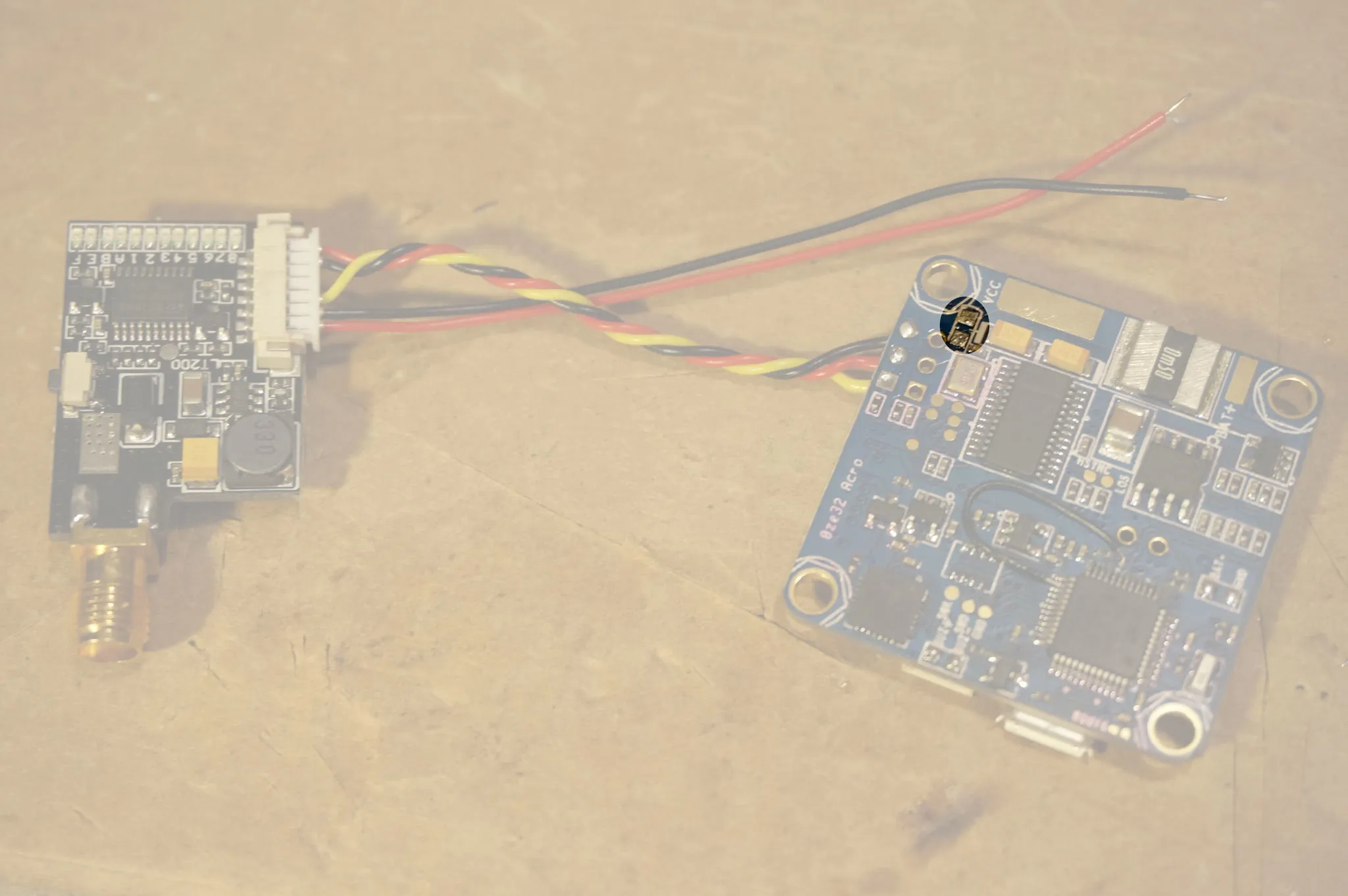 Ok, time to wire up the camera and video transmitter (VTX).
