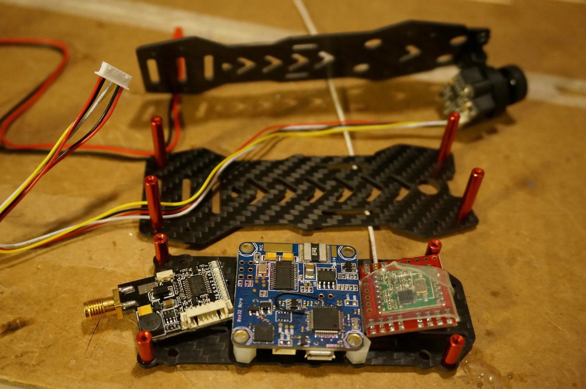 I zip-tied on the RX, then I mounted the VTX.
