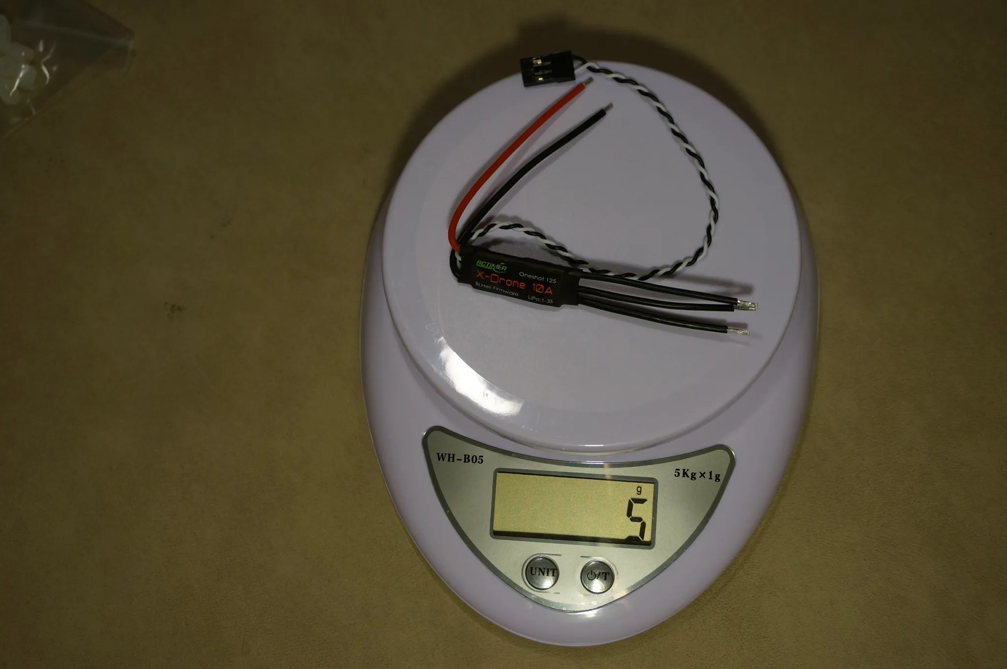 Removing the heat shrink and wires, we’re down to 2g.