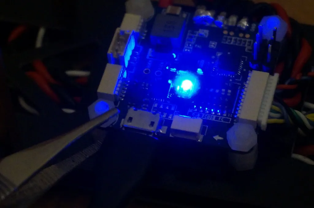You’ll know it worked if you get a solid blue light. I used a pair of tweezers to jump the pins while I plugged in the USB cable.