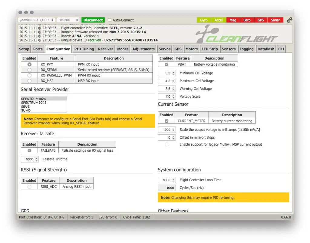 For example, to change the CONTROLLER SOFTWARE from MultiWii to CleanFlight, change this section to #define CLEANFLIGHT