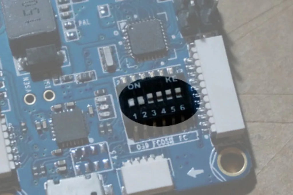 Switch the dip switches into the OSD to Flight Controller mode, like so: