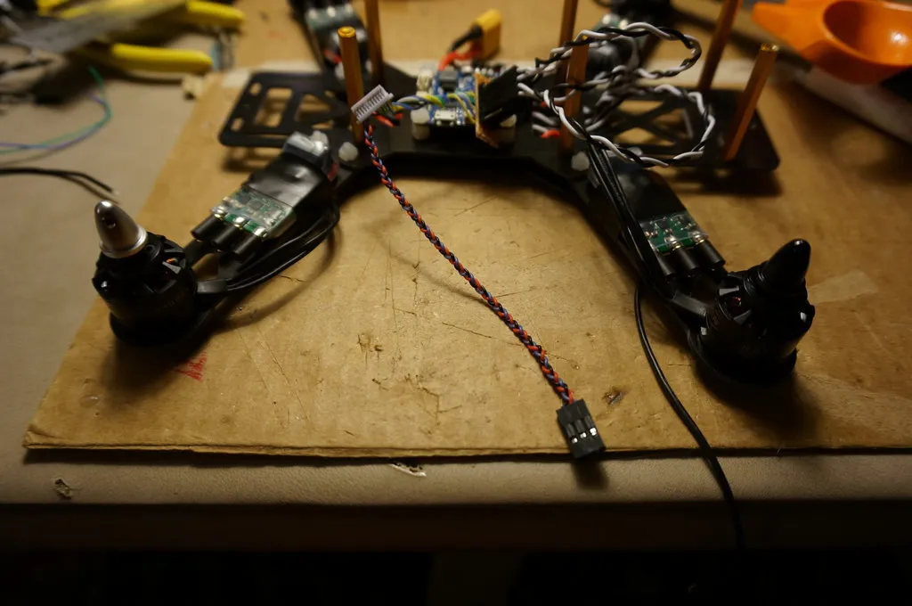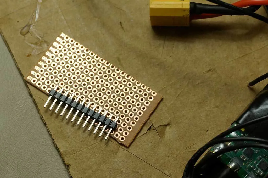 I made a little breakout board for the ESC signal and ground lines. This isn’t necessary if you’re using an ESC without signal cables pre-soldered (like these). If you’re using ESCs without pre-soldered signal cables, the OZE32 cable leads are long enough to solder them straight to the ESC. Awesome!