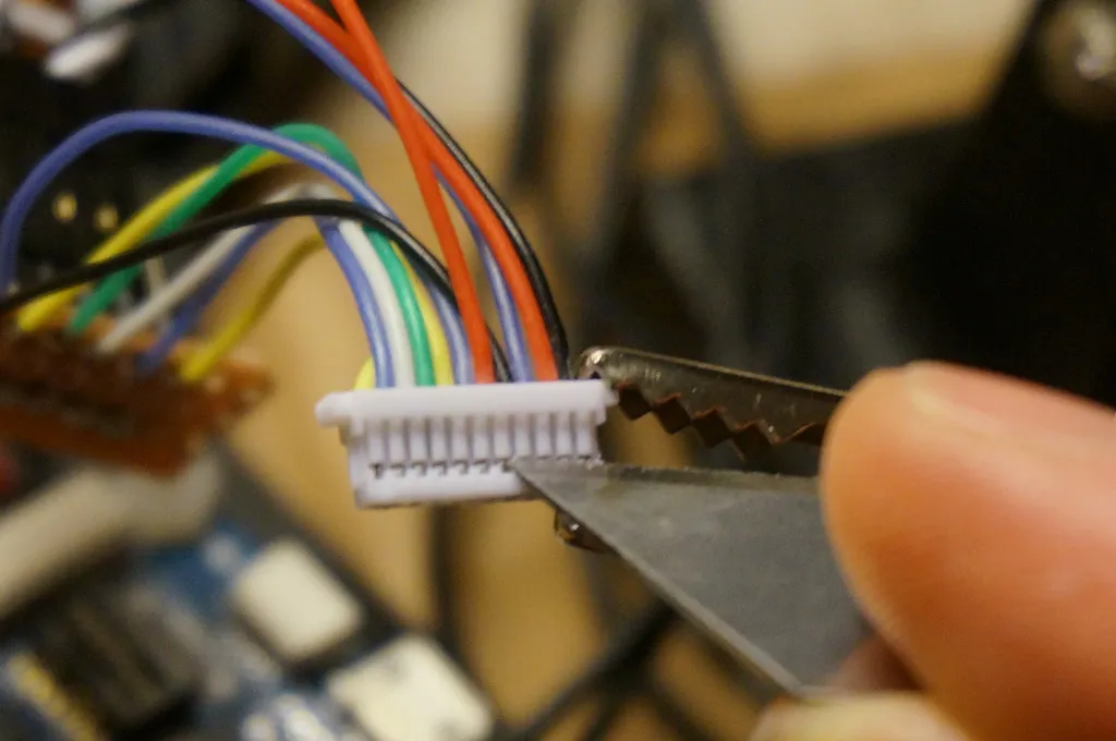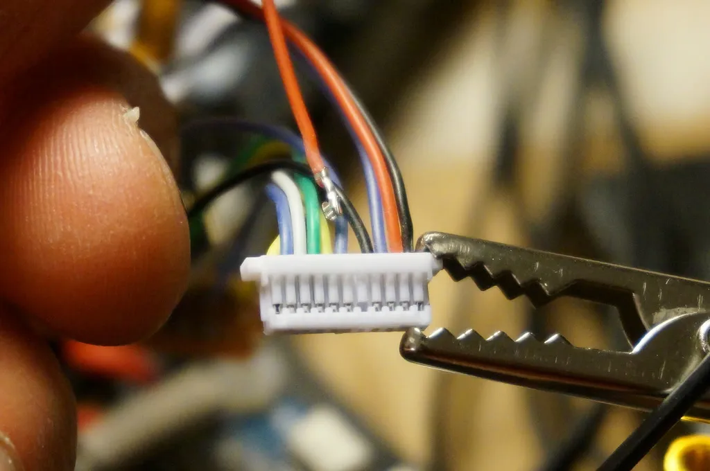 I also removed the extra VCC IN pin from the JST plug. Pop up the tooth with an blade and pull out the wire. Hold onto it though, you can always put it back in if you need it later.