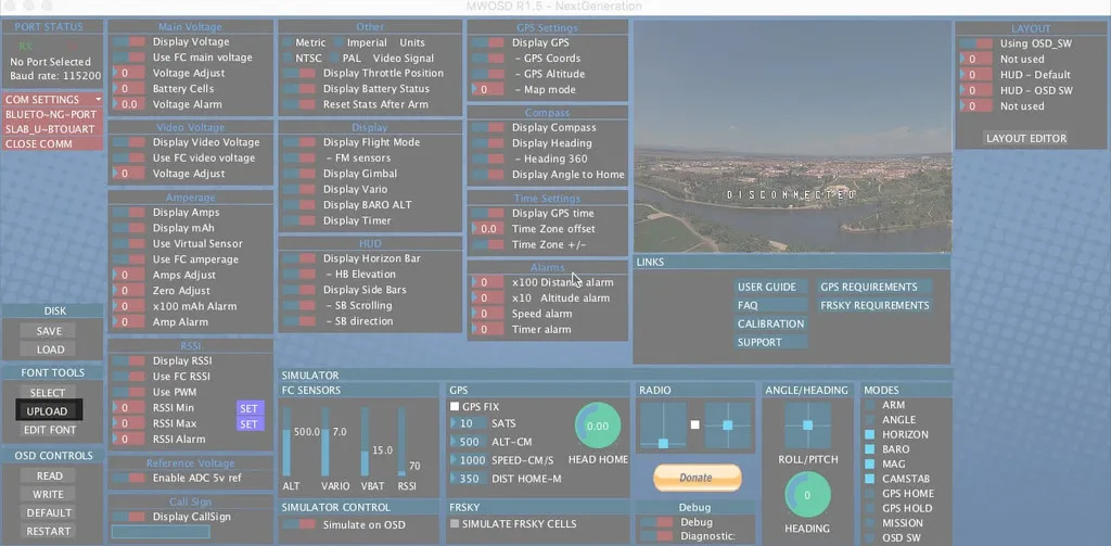 I also like to update the font. Under the font section select a font, I use the one from the downloaded zip: OTHER/MW_OSD_GUI_SOURCE/MW_OSD_GUI/data/default.mcm. Once you’ve picked a font, hit upload to save the font to the MinimOSD. It will take a minute.