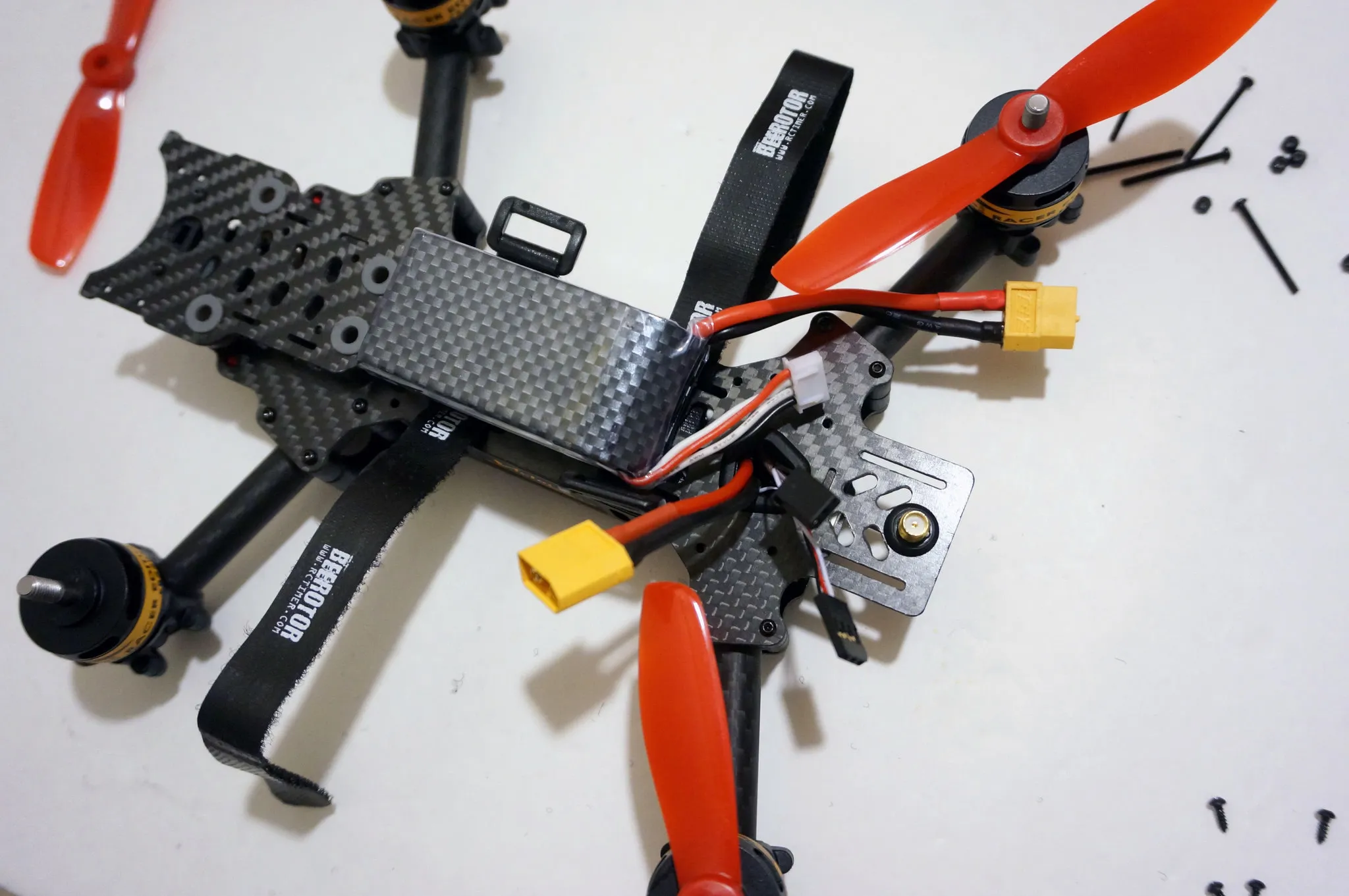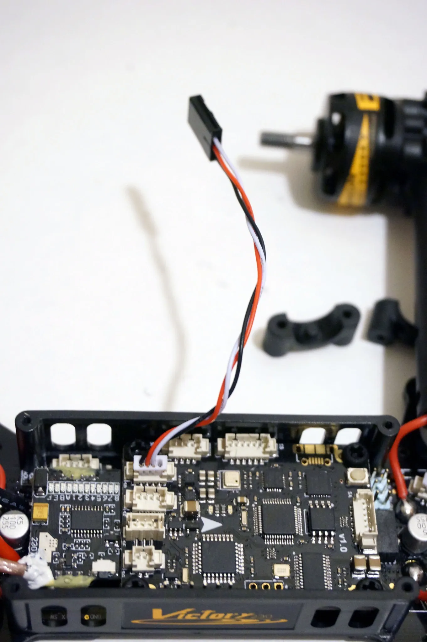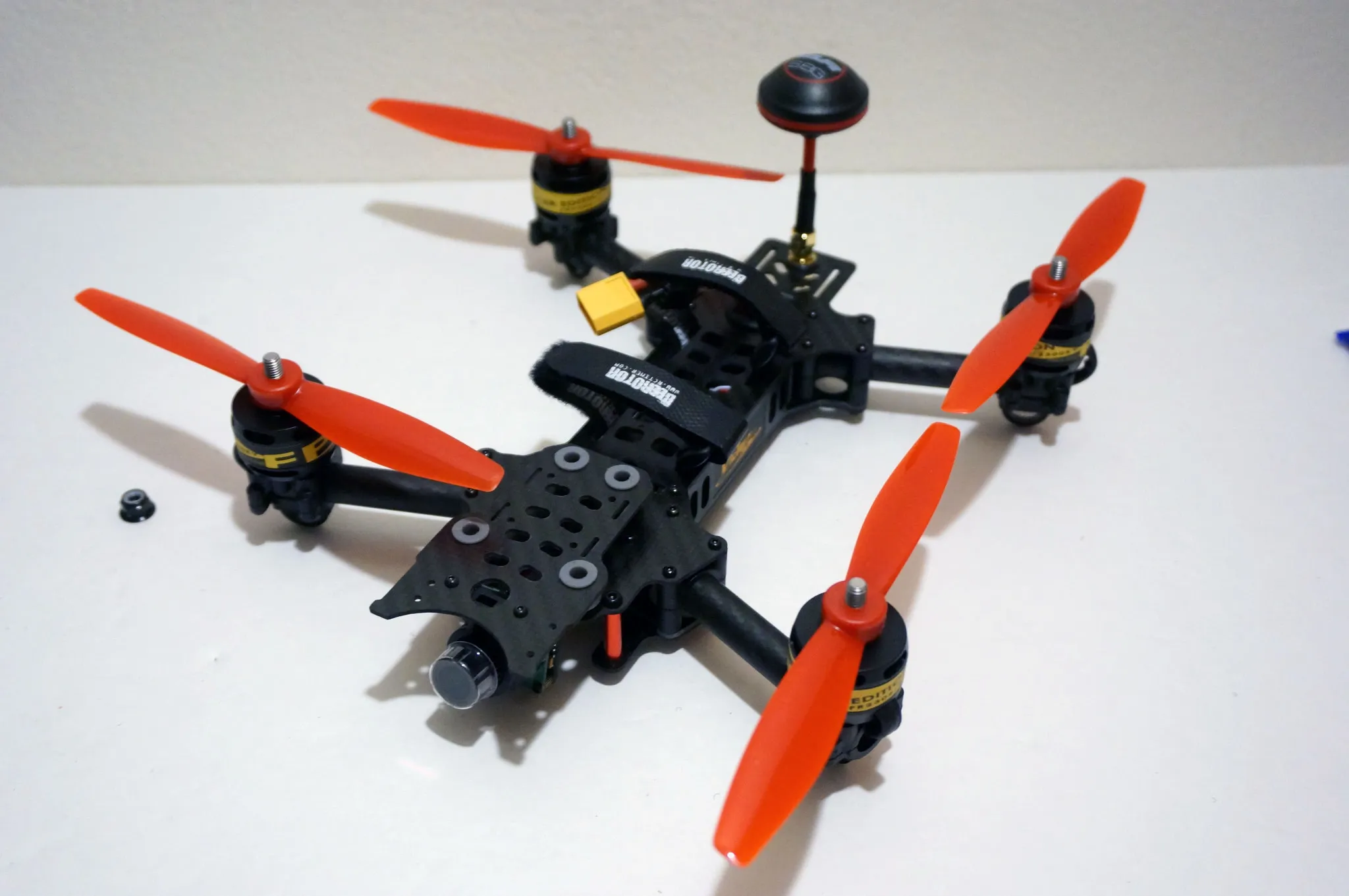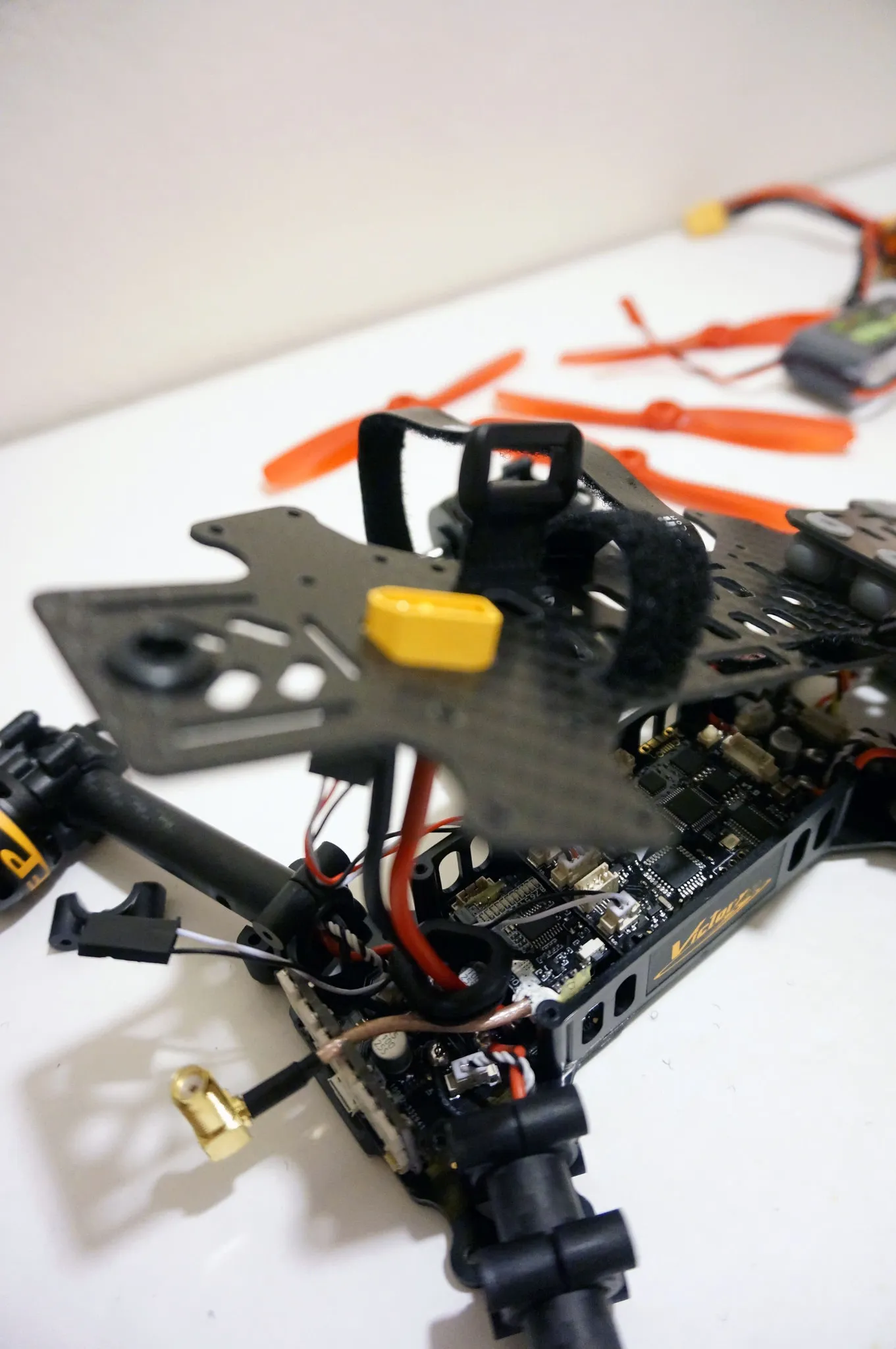 While you’re ordering, it’s pry smart to pick up some extra prop nuts (it only comes with 4) and props. Also, after disassembling my Victory230, it seems like the other likely parts to break or be lost in a hard crash are the bolts holding on the arms. From my measurements they’re M2x22mm.