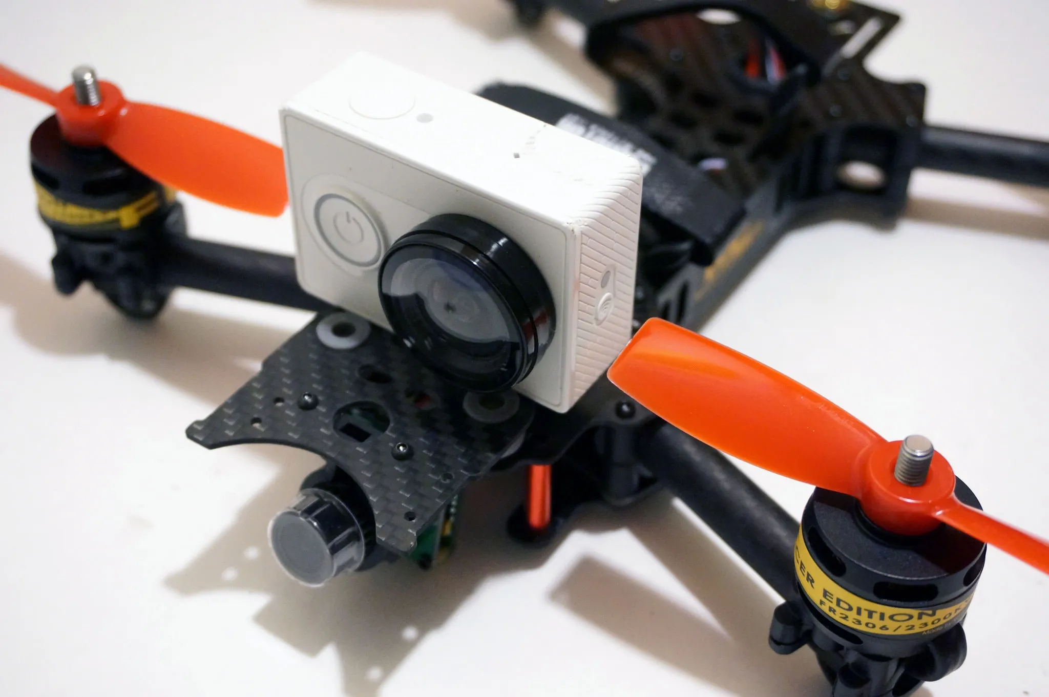 4” props allow the GoPro-size XiaoMi Yi to fit fine.