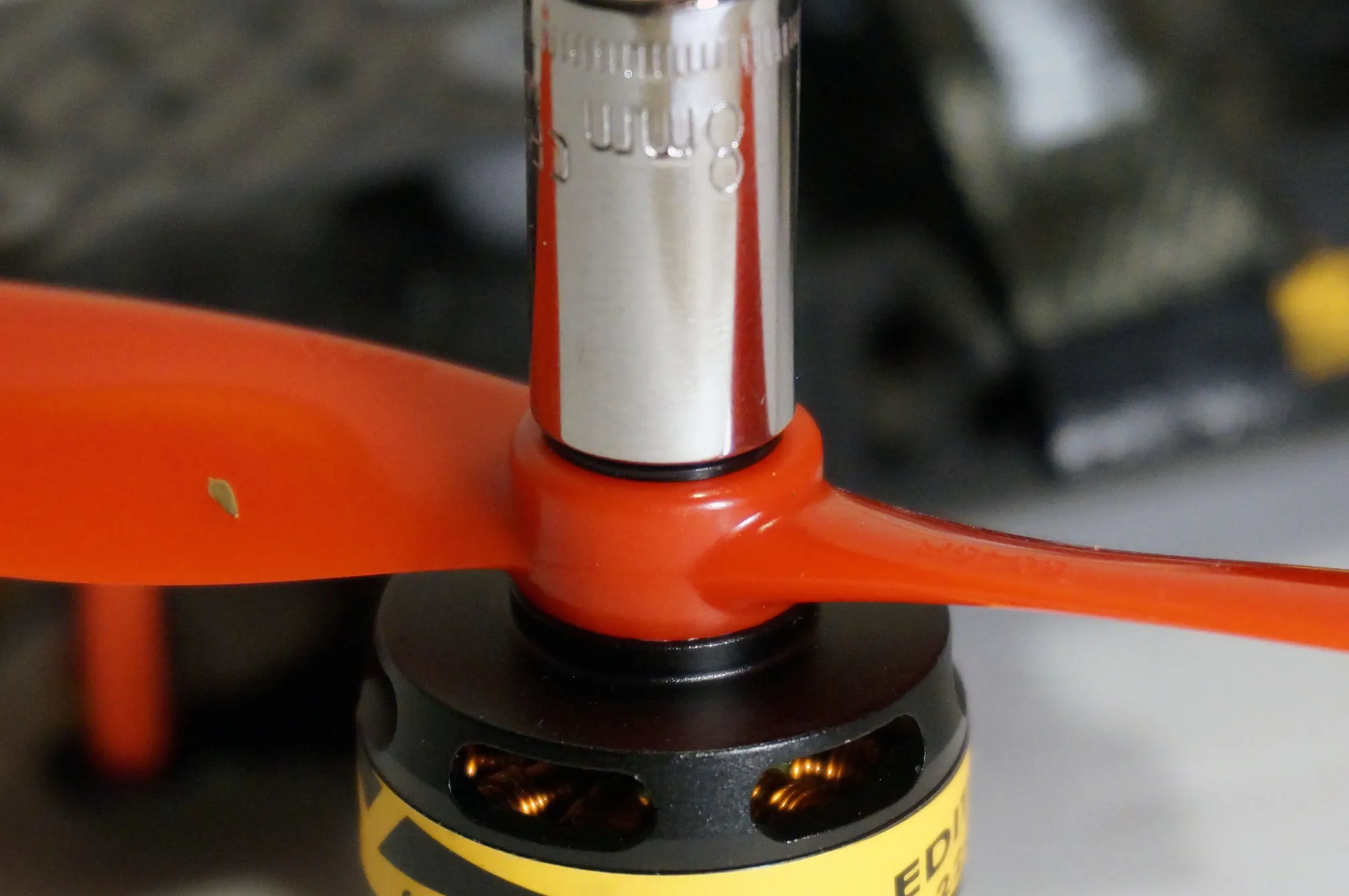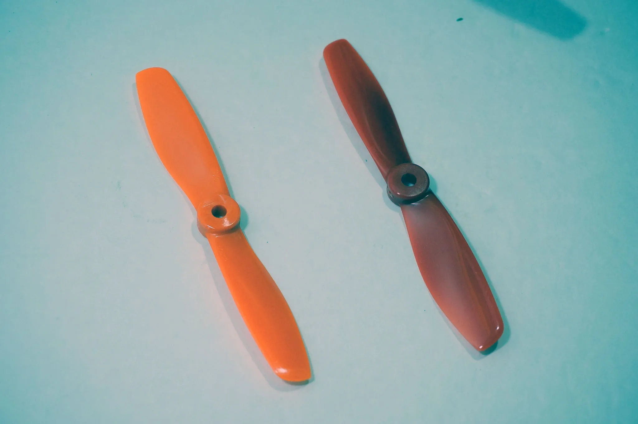 The props by the way, are 5045’s (thats 5x4.5) and they have the same shape and sheen as the DAL bullnose V2 props. The orange one is a DAL v2 and the red one is an Rctimer’s BeeRotor 5x4.5 Bullnose.