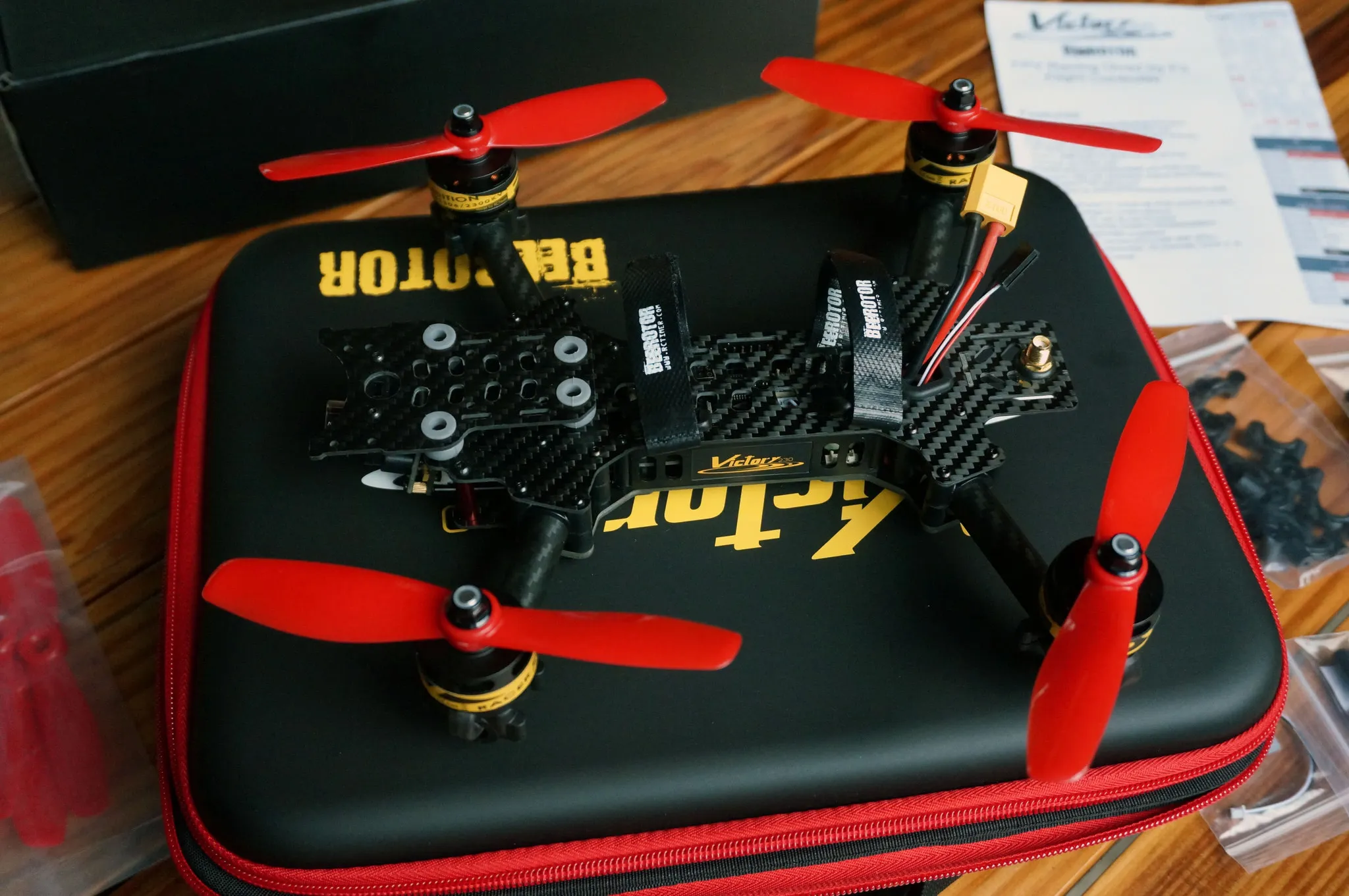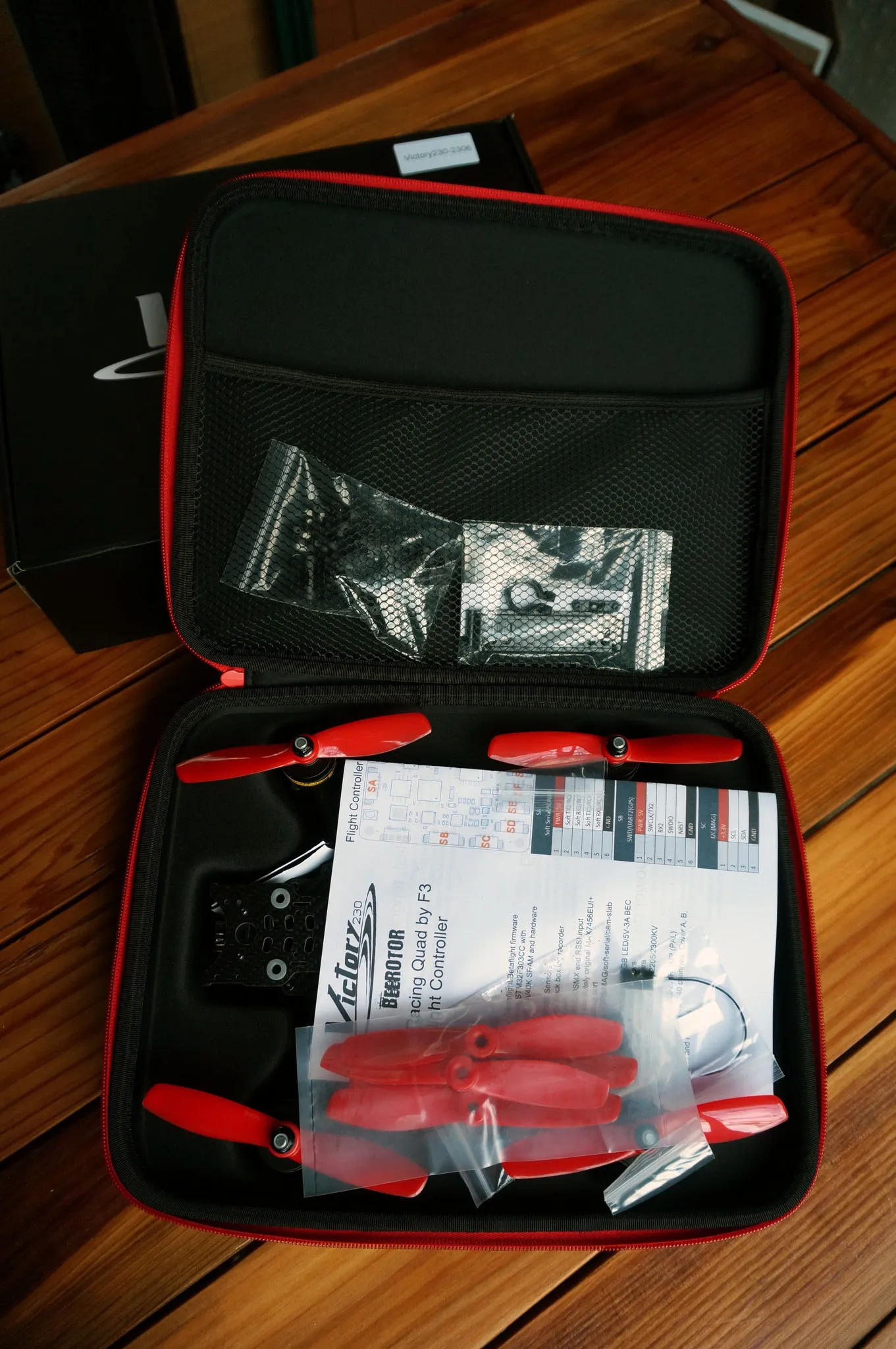 If you’re thinking about getting a Vortex Pro 250, think again. The Victory230 will out-fly and out-perform the Vortex any day of the week. Though it’s prop-span is 20mm smaller, the Victory230 has bigger motors, ESCs that handle more current, an open source flight control board and OSD that can be easily upgraded. Plus, it’s almost half the cost. This is amazing.