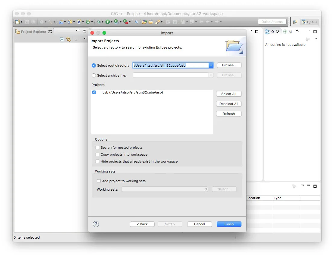 Now you can import the project into System Workbench for STM32 (or SW4STM32).