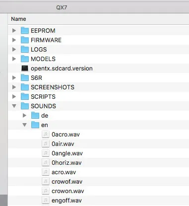 To enable the voice feature, download the latest SD card contents here. It will be named something like sdcard-taranis-x7-2.2V0008.zip. Unzip the file and copy the contents to an SD card.