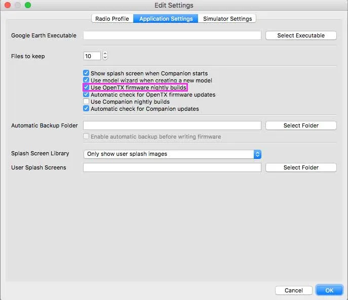 Download and install the latest OpenTX Companion. I’ll be using the Release Candidate (RC) 9 from here, as it’s the latest version available as I’m writing this: http://www.open-tx.org/2017/01/25/opentx-2.2.0RC9. Scroll to the bottom of the post to find the software.
