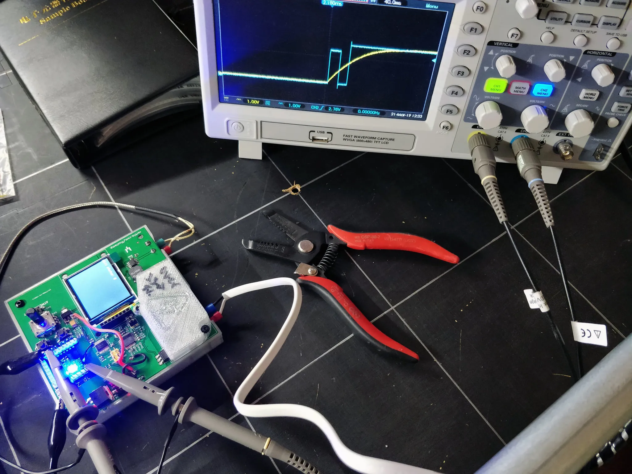 Here I have the scope hooked up to debug what turned out to be a wiring problem with the optocoupler.