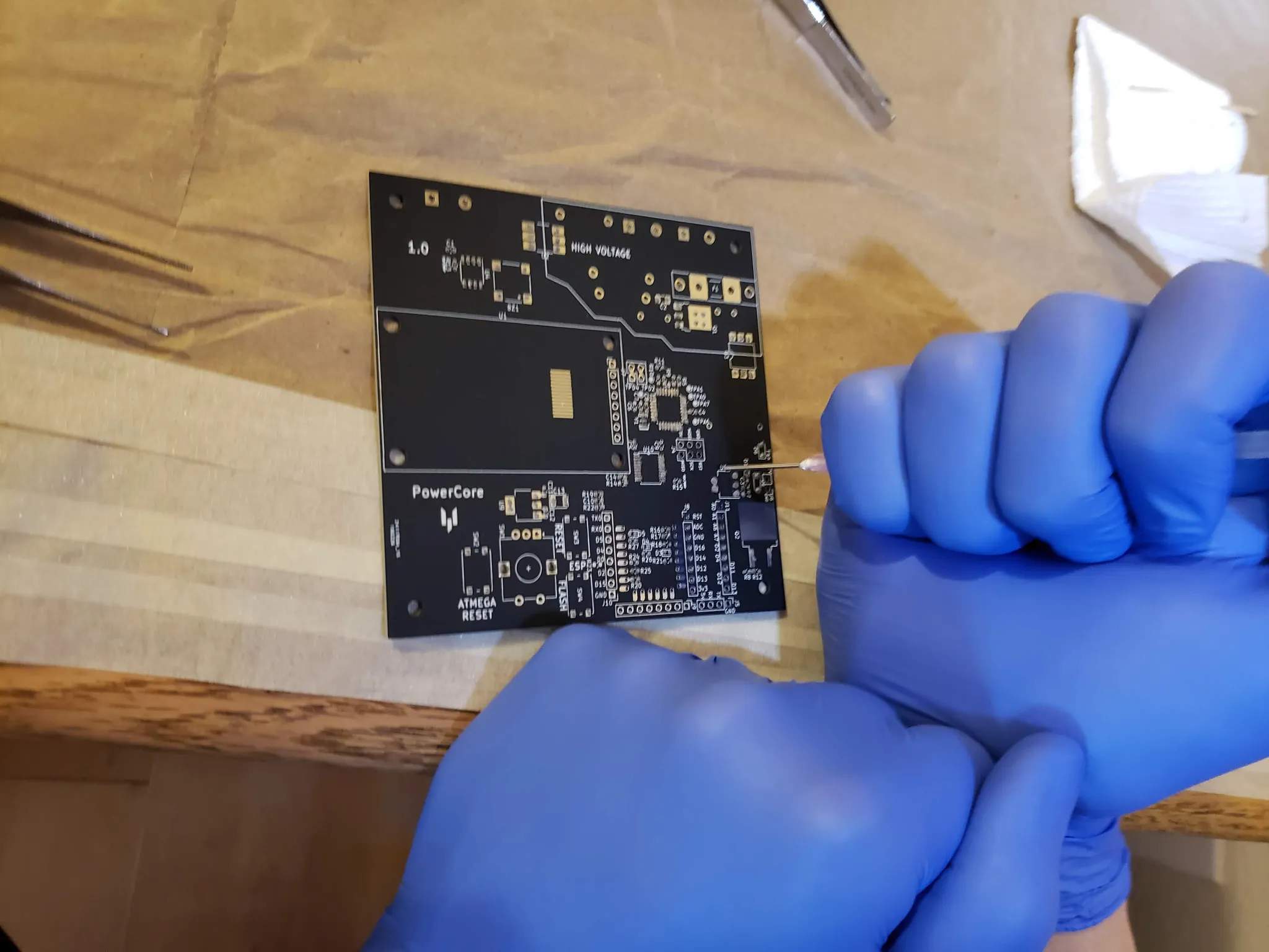Now is a good time to show how I built these prototype boards. I start by applying solder paste to each pad by hand. I have tried using a stencil, but it’s so messy it’s not worth the effort for just a few boards.