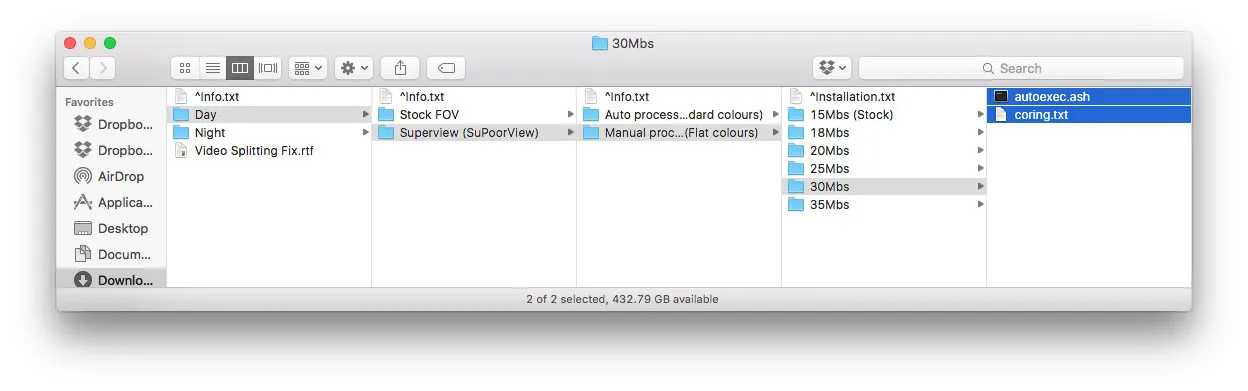 The user WaffleFPV over at FPVLab.com wrote an awesome custom script that massively improves the recording quality of the camera.